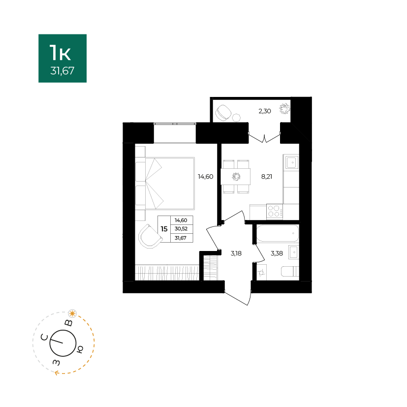 - № 15Дом №2, Секция Секция №2, Этаж 1