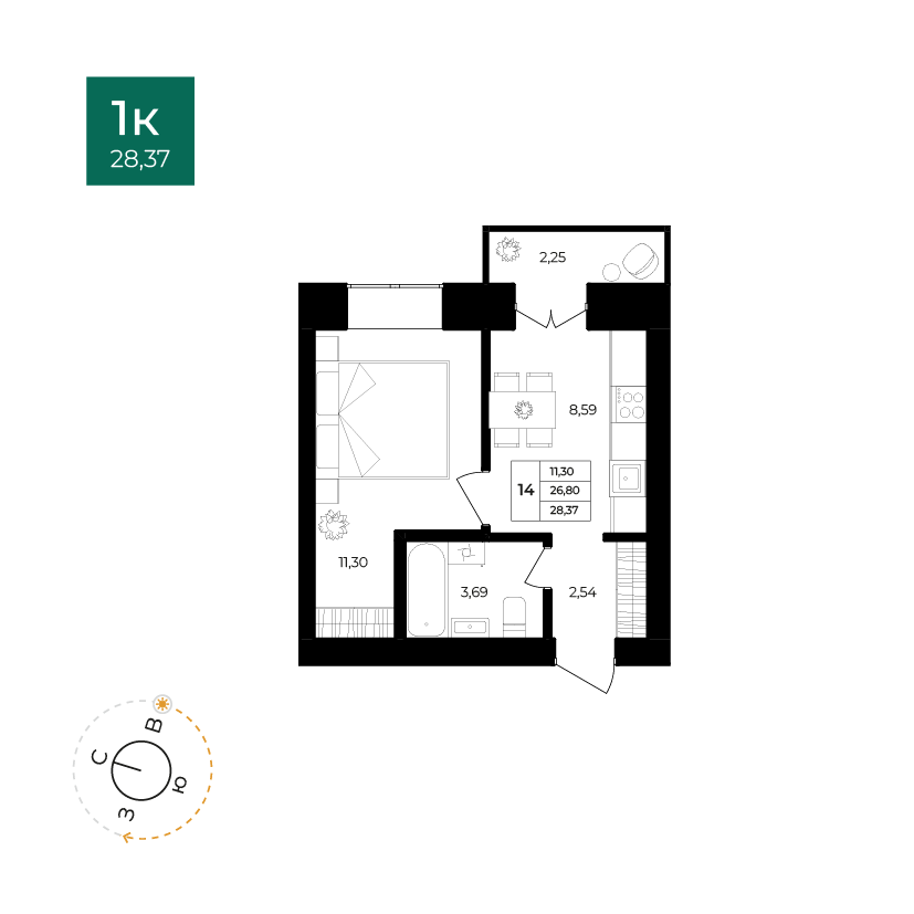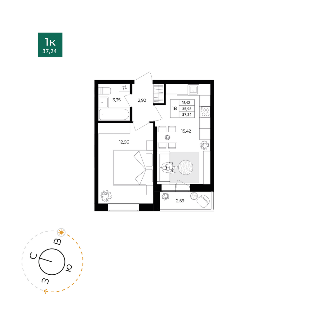 1-комнатная