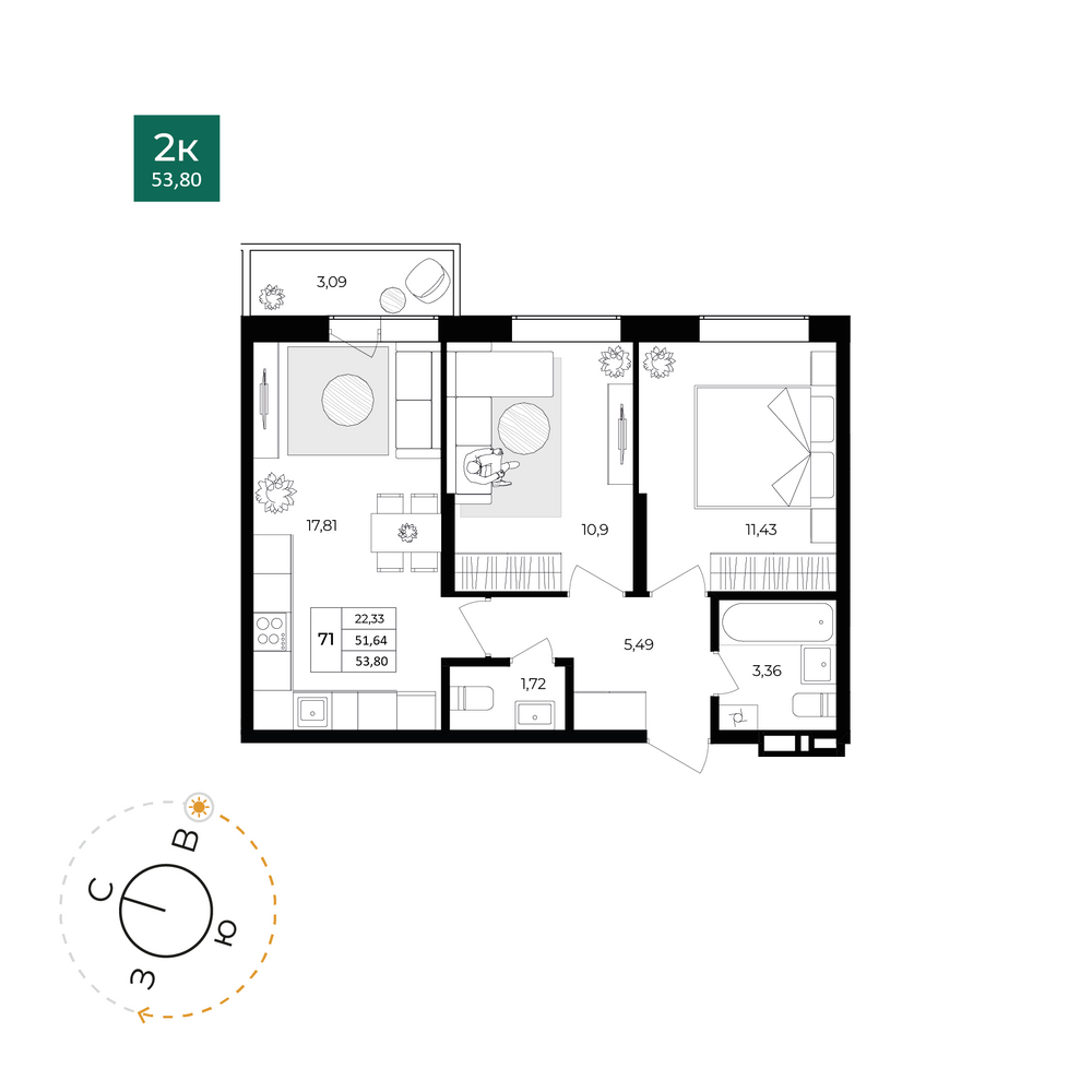 - № 71Дом №1, Секция Первая , Этаж 7